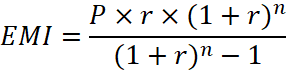 The calculator uses the following formula to calculate the EMI: